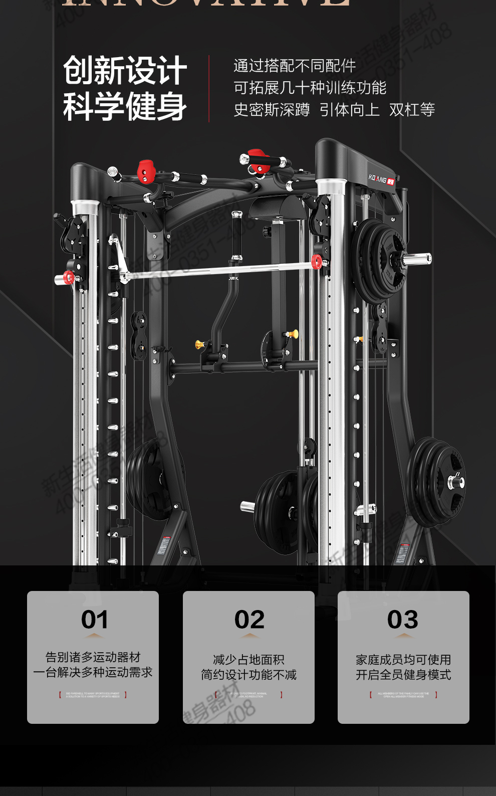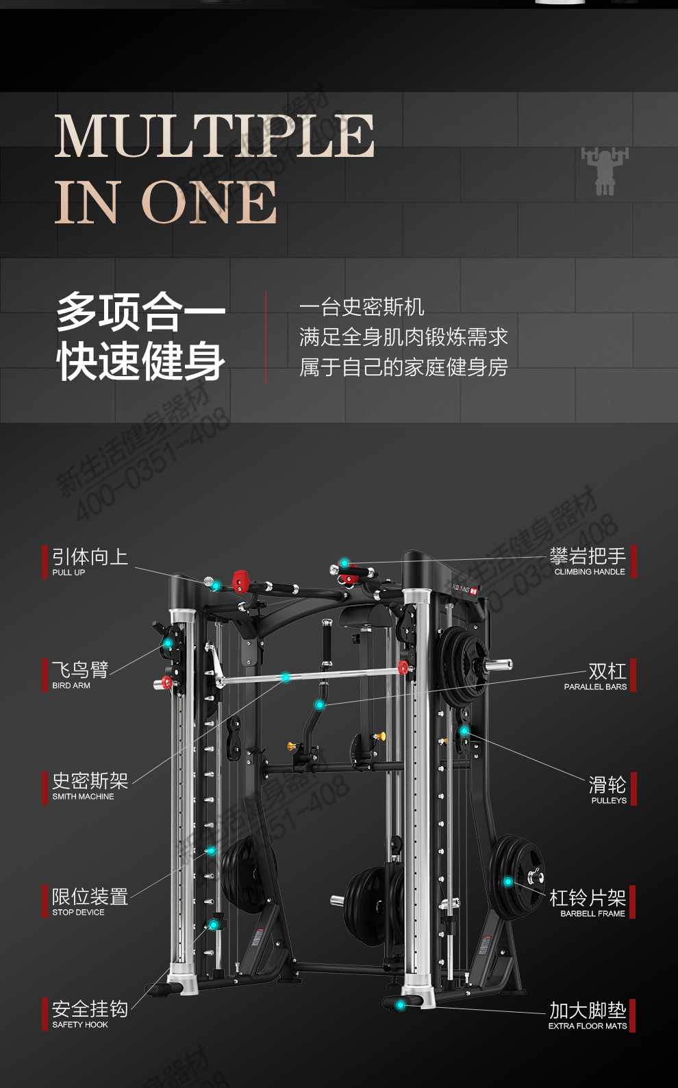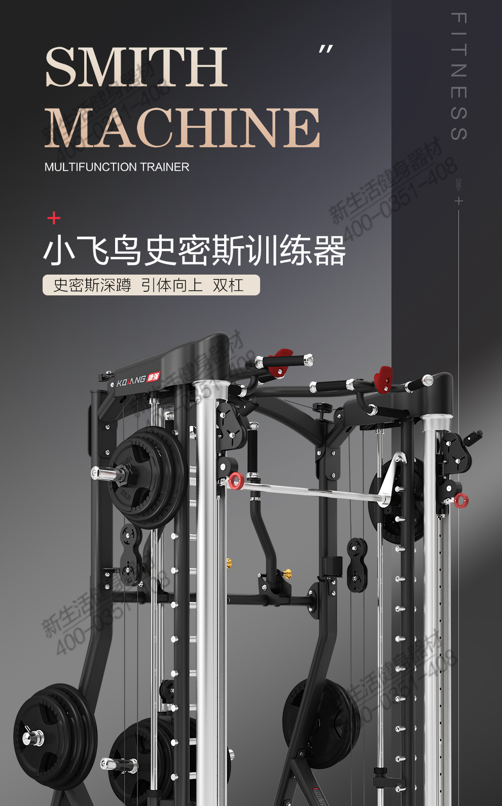 leyu.乐鱼多功能史密斯机4068移动飞鸟综合训练器健身器材龙门架举重床深蹲卧推杠铃架