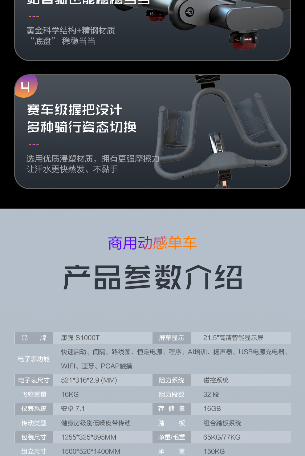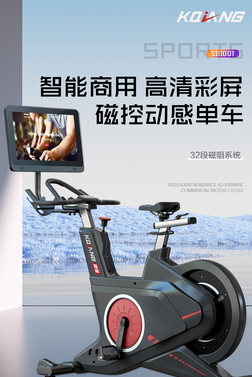 leyu.乐鱼动感单车S1000T彩屏款家用商用级别健身车健身房专用健身器材