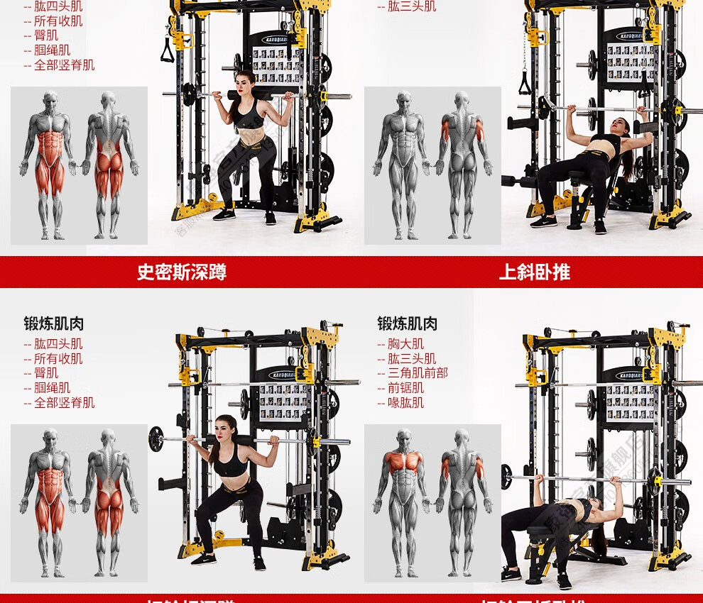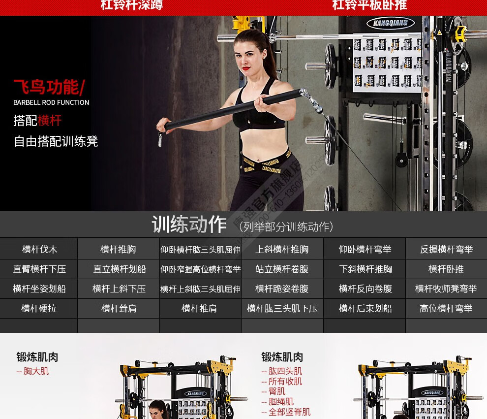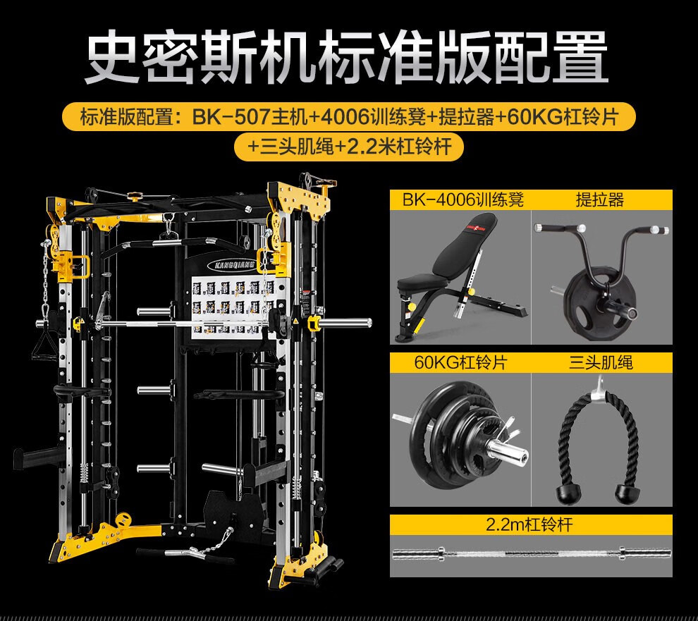 leyu.乐鱼BK507史密斯机移动飞鸟综合训练器健身器材龙门架举重床深蹲卧推杠铃架 BK507升级配置